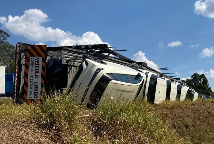 Os representantes da empresa responsável pelo transporte dos carros elétricos informaram que os veículos serão levados para São Bernardo do Campo. A operação inclui a remoção dos automóveis da cegonheira e o desviramento do caminhão, com previsão de conclusão ainda hoje, domingo (21). Uma placa de sinalização de fiscalização de velocidade foi derrubada no episódio.