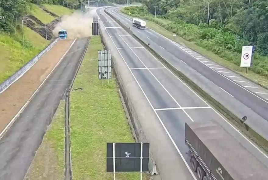 Câmeras de monitoramento flagraram um caminhão usando a área de escape da BR-277