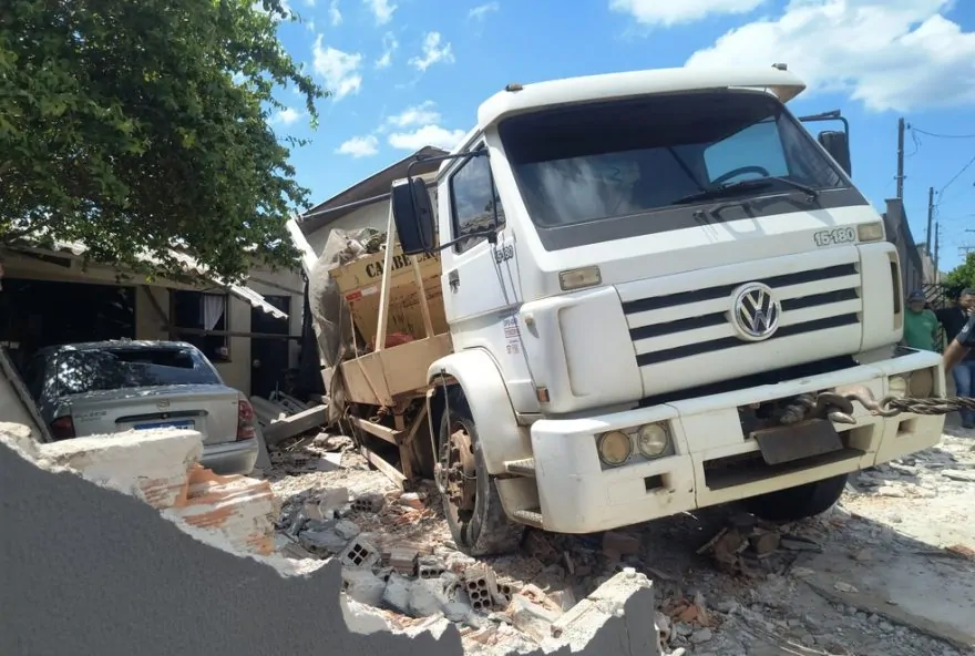 Caminhão desgovernado invade casa em Cambé; ninguém se feriu