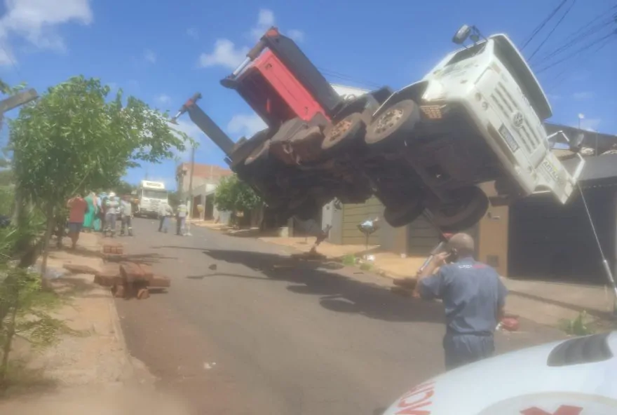 Na tarde desta quinta-feira, 11, um caminhão guindaste tombou enquanto elevava uma piscina de fibra de vidro em uma residência no bairro Lindolfina, em Rio Verde, município localizado na região sudeste de Goiás.