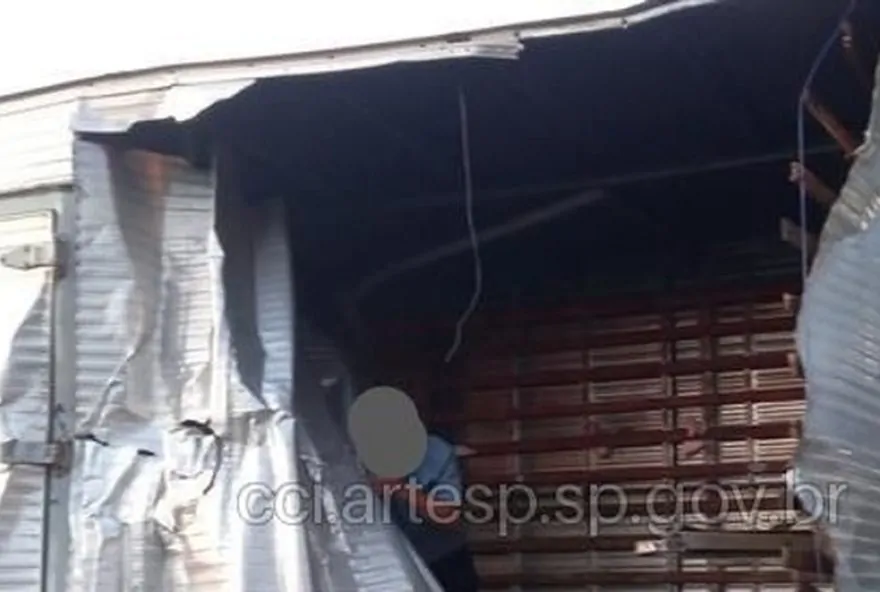 1 de 1 Colisões destruíram o baú do caminhão — Foto: Divulgação/Artesp