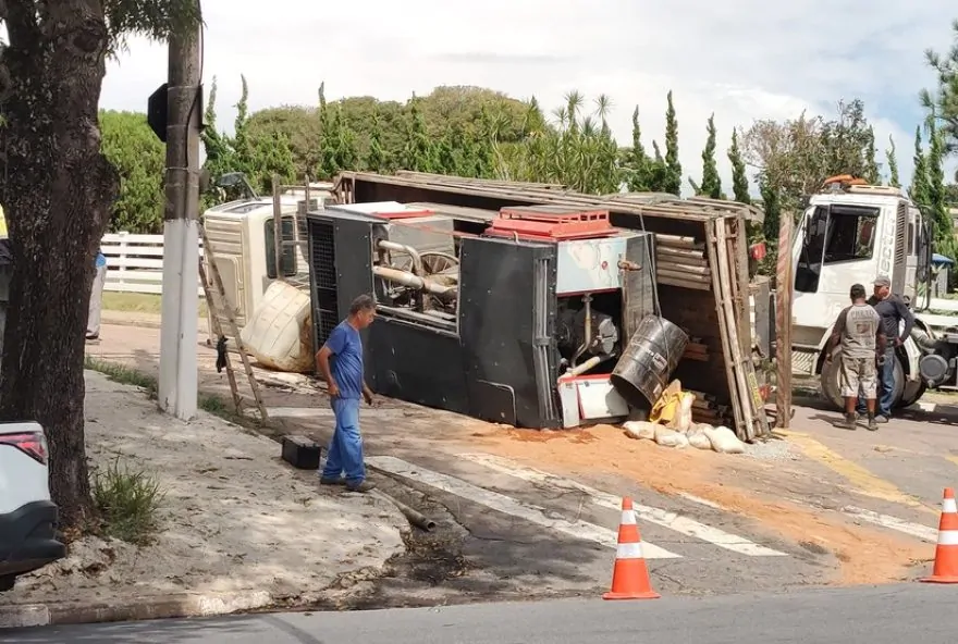 A empresa pertence a uma empresa especializada em poços artesianos, que lamentou o ocorrido e informou que presta apoio ao motorista, que se feriu.
