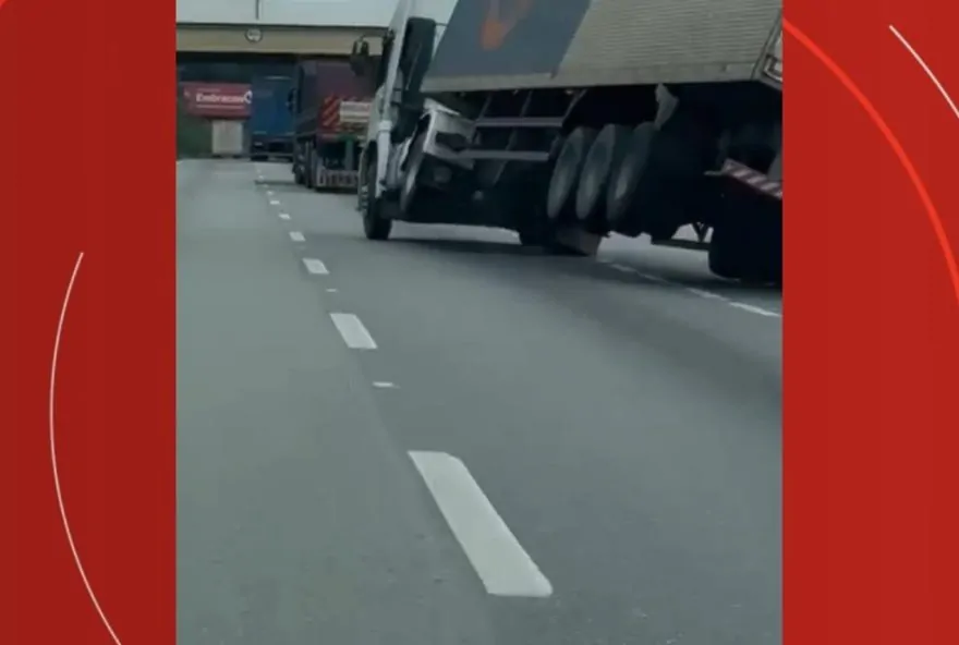 Nas imagens, é possível ver o caminhão fechando bruscamente a passagem de um