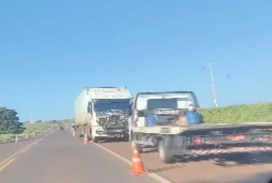 atingido na lateral por uma carreta. A batida jogou o caminhoneiro para a