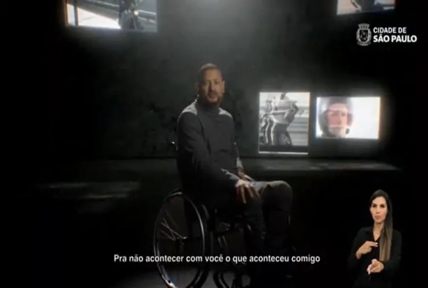 Vídeo que será veiculado em rede nacional a partir de domingo mostra homem em cadeira de rodas alertando sobre o risco de acidentes com moto