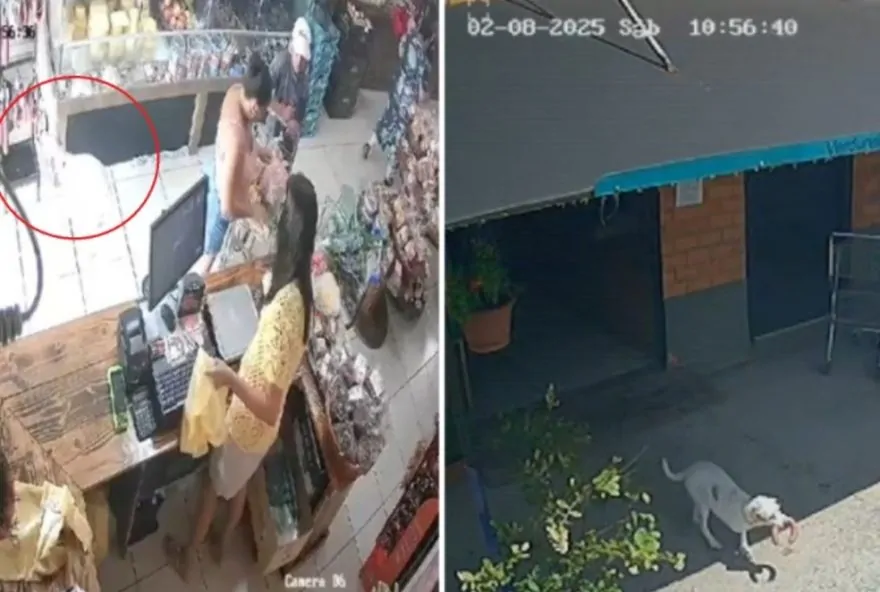 O cão estava com o pai de Gava quando entrou na mercearia. É possível ver alguns