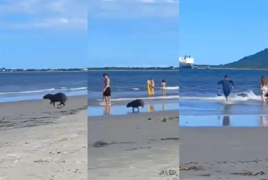 No registro em vídeo, é possível observar a capivara correndo pela areia em direção ao mar, seguida por dois cachorros. A publicação ganhou repercussão nas redes, alcançando mais de 90 mil visualizações em um único site. “Olha a capivara! Tô filmando”, diz a narradora enquanto registra o episódio.