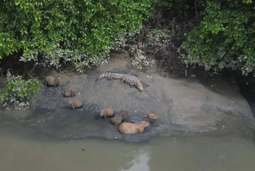 Essas cenas de capivaras e jacaré se destacam como um exemplo de harmonia e equilíbrio entre as espécies que habitam o Rio Capibaribe, mostrando a importância de respeitar e preservar a diversidade do ecossistema local. Mesmo sendo um registro incomum, essa interação nos lembra da complexidade e beleza da vida selvagem, proporcionando uma reflexão sobre a importância de proteger esses ambientes naturais.