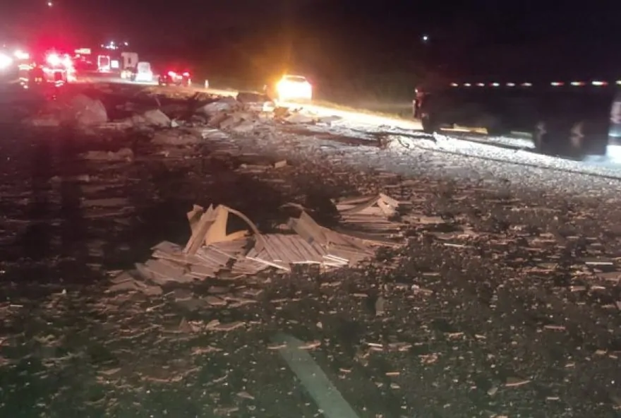 Uma carga de pisos caiu de um caminhão e provocou um congestionamento na Rodovia Bandeirantes, em Campinas. O incidente ocorreu na noite de segunda-feira (20), no sentido capital, por volta das 19h50, no km 86. Devido à situação, três faixas precisaram ser interditadas para a remoção dos pisos, e o tráfego ficou restrito ao acostamento, resultando em um congestionamento de 2 km.