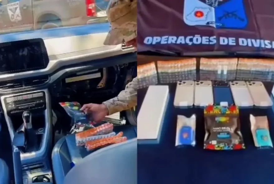 Dois homens foram detidos na última terça-feira (30) após uma operação conjunta das forças de segurança de Goiás e Minas Gerais resultar na apreensão de uma carga ilegal avaliada em aproximadamente R$ 407 mil. O material estava escondido em um compartimento oculto de um veículo abordado durante fiscalização. A ação foi conduzida pelo Comando de Operações de Divisas (COD), que interceptou o automóvel durante uma abordagem de rotina. Durante a inspeção, os policiais identificaram irregularidades no veículo e localizaram um fundo falso onde estavam armazenados diversos produtos proibidos no país. Entre os itens apreendidos estavam medicamentos sem autorização para venda no Brasil, cigarros eletrônicos, equipamentos eletrônicos e porções de maconha em formato de goma. Conforme a polícia, os remédios teriam sido trazidos ilegalmente do Paraguai e não possuíam qualquer tipo de controle sanitário, o que representa risco direto à saúde da população. Os aparelhos eletrônicos também não apresentavam documentação fiscal, configurando crime de descaminho, caracterizado pela entrada de mercadorias no país sem declaração à Receita Federal e sem o pagamento dos tributos obrigatórios. De acordo com as informações apuradas, a carga tinha como destino Goiânia, onde seria repassada a pontos comerciais para distribuição e venda. O veículo utilizado no transporte foi apreendido junto com todo o material irregular. Os suspeitos foram levados à Delegacia da Polícia Federal, onde ficaram à disposição da Justiça. As investigações continuam para apurar a origem dos produtos e identificar outros possíveis envolvidos no esquema de contrabando.