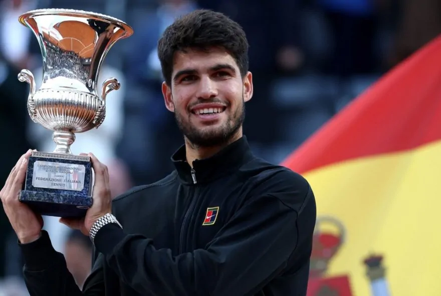 Carlos Alcaraz é o campeão do Roma Open. Em uma exibição firme e madura diante do líder do ranking mundial, o espanhol superou Jannik Sinner por 2 sets a 0, com parciais de 7/6 (7-5) e 6/1, em 1h45min de jogo neste domingo (18), e levantou o troféu pela primeira vez no saibro do Foro Italico.