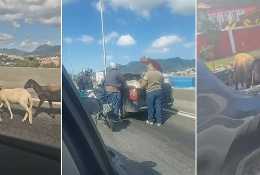 Um flagrante inusitado chamou a atenção de motoristas que passavam pela Linha Vermelha, uma das vias expressas mais movimentadas do Rio, na manhã desta quarta-feira (30). Quatro carneirinhos foram vistos caminhando tranquilamente pela pista, na altura do Caju, no sentido Centro do Rio.