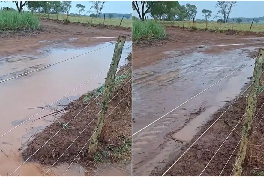 a lavoura. O vídeo segue e Luiz mostra que, minutos depois, a estrada já está