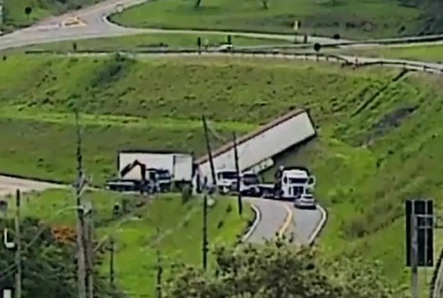 De acordo com a concessionária que administra o trecho, o acidente aconteceu na