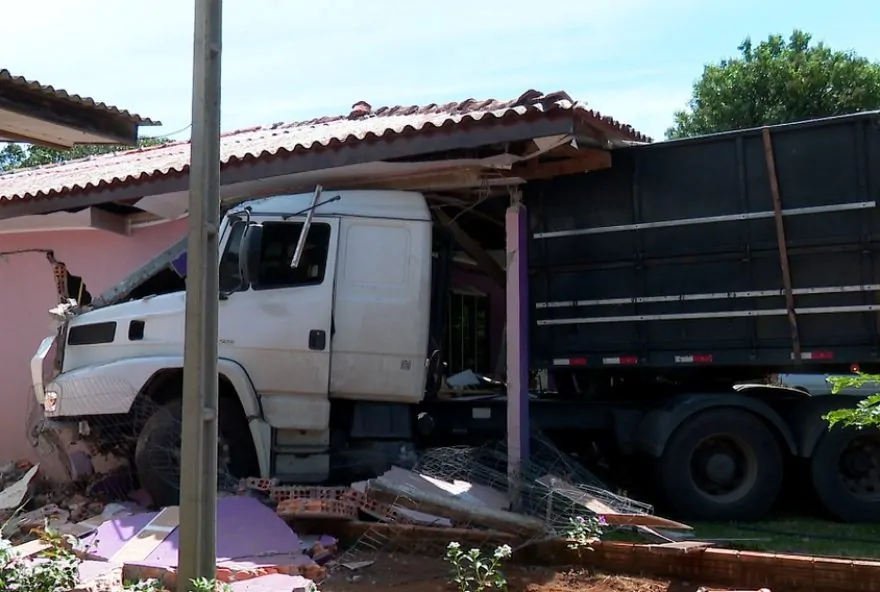 O motorista de uma carreta perdeu o controle do veículo e invadiu uma casa às margens da BR-277, em Guaraniaçu, no oeste do Paraná.
