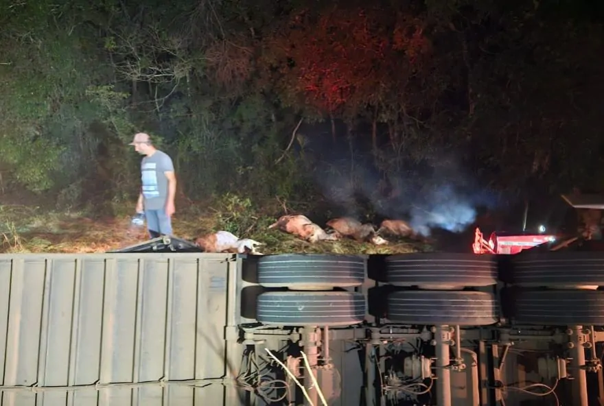 A rodovia foi fechada para retirada dos animais, que foram levados para propriedades rurais próximas ao local do acidente. O motorista não teve ferimentos.