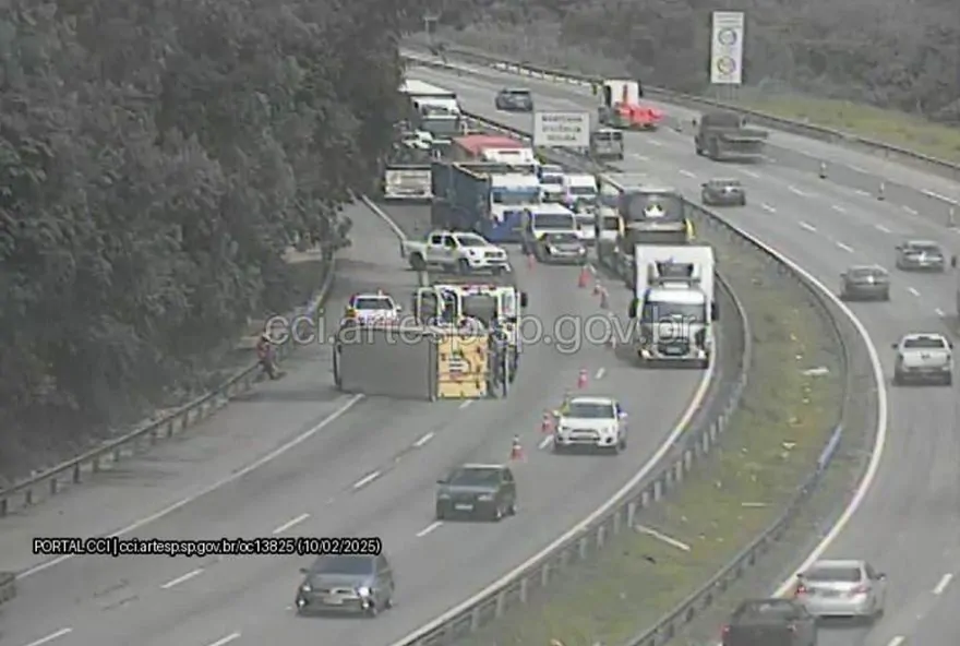 Uma carreta tombou e interditou todas as faixas da Rodovia Castello Branco (SP-280), em Araçariguama (SP), na tarde desta segunda-feira (10). Felizmente, não houve feridos no acidente. De acordo com a Agência de Transportes do Estado de São Paulo (Artesp), o incidente ocorreu no quilômetro 45,5 da pista sentido interior, o que levou à necessidade de interdição da via para a remoção do caminhão.