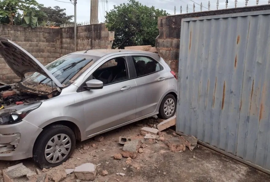 Um carro atingiu o muro e invadiu o quintal de uma casa na tarde desta sexta-feira (18) no bairro Residencial Santa Tereza, em São Sebastião do Paraíso (MG).