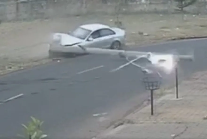 VÍDEO: Carro atinge poste e derruba estrutura no Bairro Novo Mundo, em Uberlândia