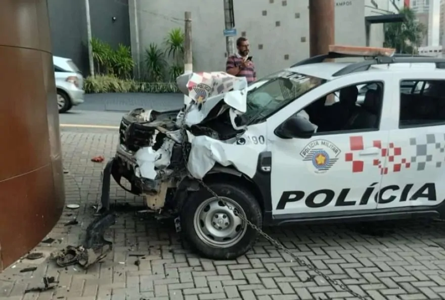 Carro avança sinal vermelho, atinge viatura da PM e deixa quatro feridos em Campinas