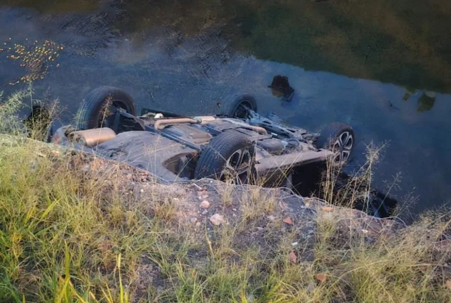 Carro cai dentro de córrego e deixa duas pessoas feridas em Vinhedo