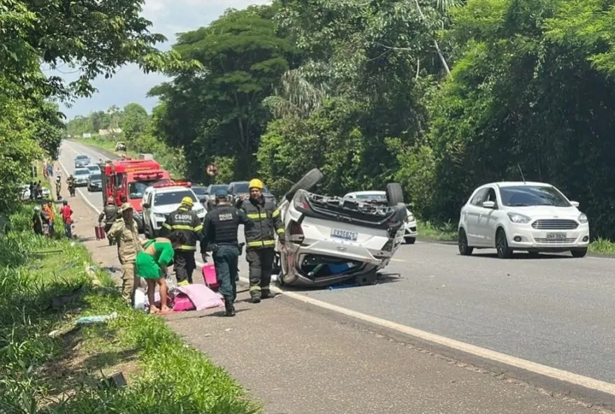Carro capota após se chocar com outro veículo em São Miguel do Guamá, no PA