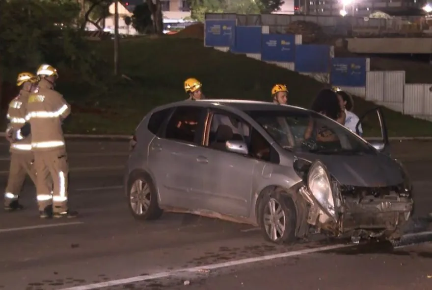 Segundo os militares, o Honda Fit prata bateu em uma mureta de proteção antes de