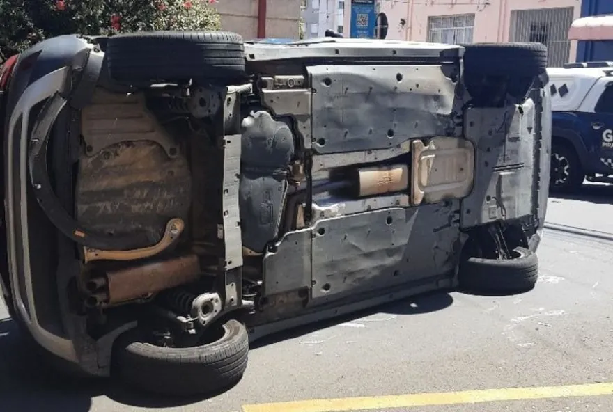 Carro capota no bairro Alto em Piracicaba após avançar sinal de trânsito: veja fotos