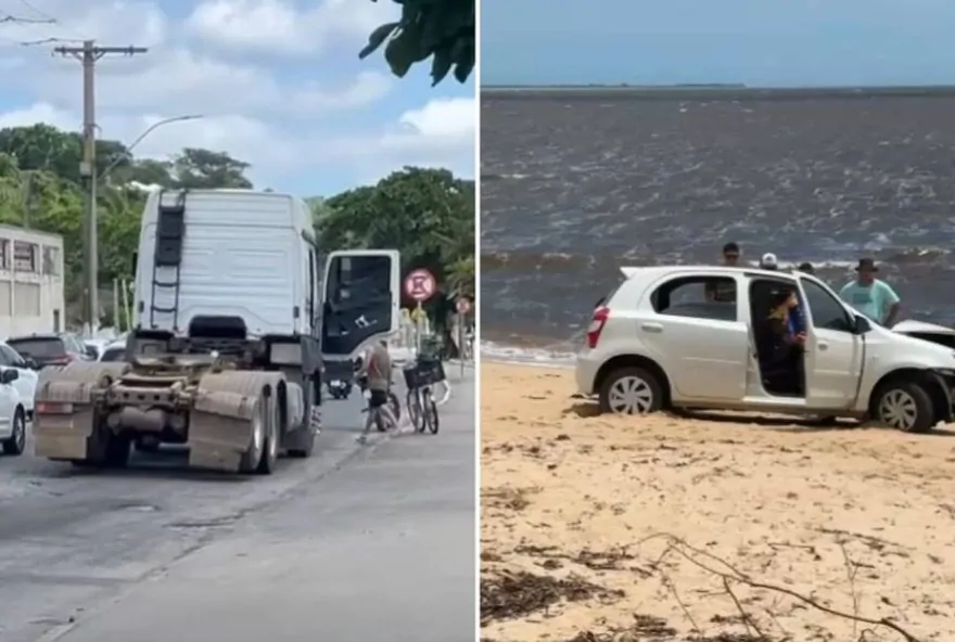Um carro se chocou na traseira de uma carreta e acabou invadindo a praia no centro de Porto Seguro, uma cidade turística no sul da Bahia, durante a manhã deste domingo (1º). Felizmente, não havia banhistas presentes no local no momento da colisão, porém o motorista do veículo precisou de cuidados médicos.
