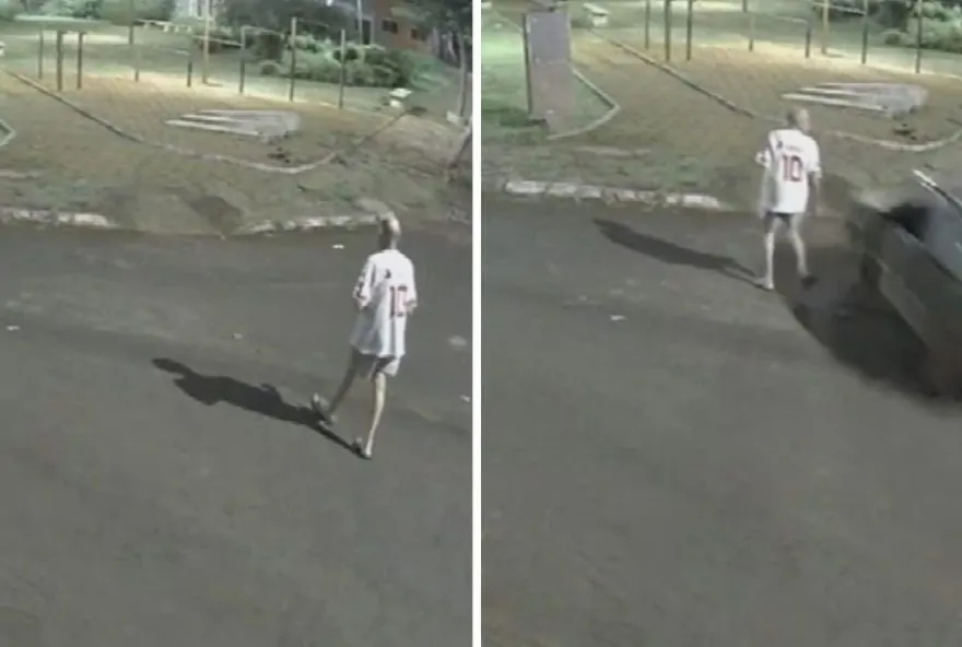 O caso ocorreu na quarta-feira (19), mas as imagens de câmera de segurança foram divulgadas esta semana. Na filmagem, é possível ver um homem atrevessando a rua, quando é surpreendido por um carro desgovernado, que passa ao lado dele. Uma outra pessoa estava sentada em um banco da praça, a pouco metros da colisão, mas também não foi atingida.