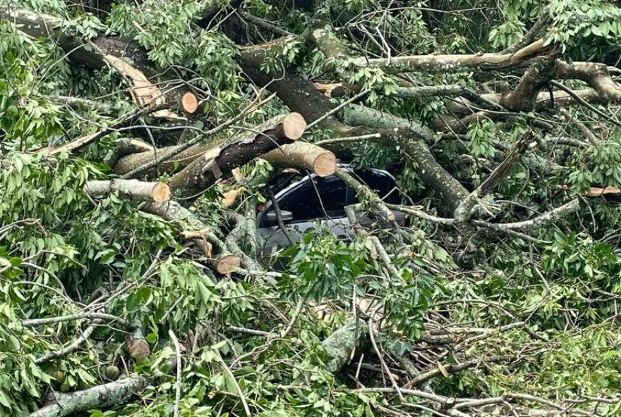Uma árvore de grande porte caiu em cima de um carro na manhã deste sábado (14), em São José dos Campos (SP). O Corpo de Bombeiros informou que o motorista, um homem de 58 anos, teve apenas escoriações. O acidente ocorreu na altura do Km 3 da Rodovia dos Tamoios.