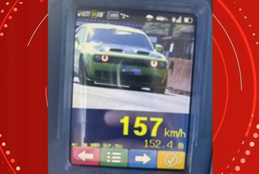 Um motorista foi flagrado dirigindo um carro esportivo a 157 km/h em um trecho urbano da PR-445 que atravessa Londrina, no norte do Paraná.