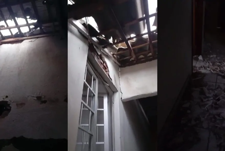 Casa é atingida por raio em Ferreiros durante chuva intensa; danos impressionantes; mãe e filho saem ilesos