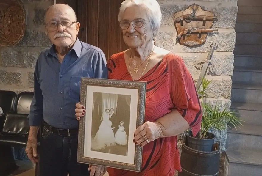Um casal de Gravataí, na Região Metropolitana de Porto Alegre, celebrou recentemente suas bodas de vinho, marcando 70 anos de uma união baseada em paciência, compreensão, amor e muita honestidade. Celita Gomes e Albino Gomes, ambos com 92 anos, comemoraram a data especial em casa, ao lado de seus filhos e demais familiares, relembrando sete décadas de um amor que começou como um verdadeiro encontro de almas.