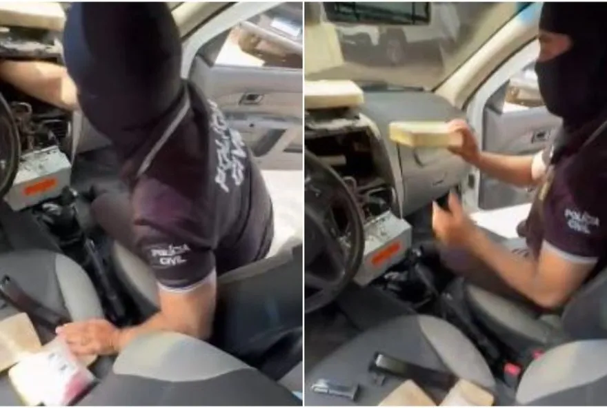 Ainda de acordo com a polícia, a investigação teve início a partir de informações repassadas pela Polícia Rodoviária Federal (PRF), indicando que o veículo estaria evitando pontos de fiscalização. Após buscas, a caminhonete foi localizada e abordada pelas autoridades, com o casal e a criança dentro do veículo. Durante a revista, os agentes encontraram a droga e os materiais ilícitos escondidos no painel.