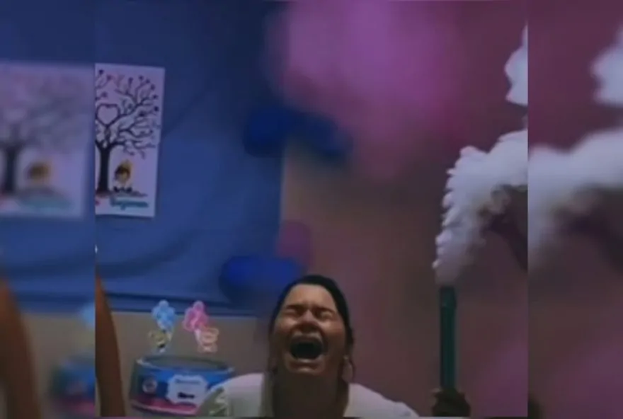 Na gravação, o marido estoura confetes, e todos parecem bastante emocionados.