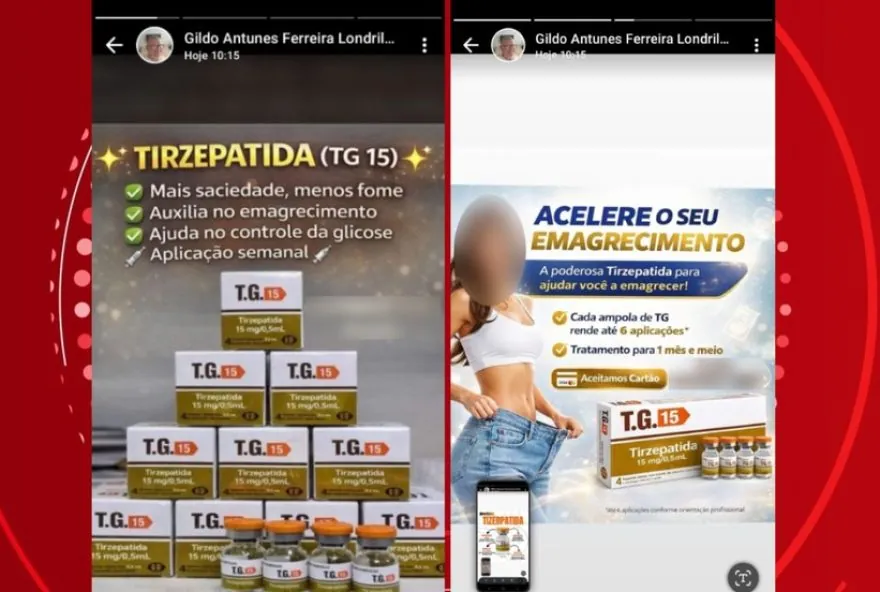 Uma investigação realizada na cidade de Londrina resultou na prisão de um casal suspeito de vender medicamentos por meio de aplicativos de mensagens. Os vendedores anunciavam tirzepatida, um medicamento de marca proibida pela Agência Nacional de Vigilância Sanitária (Anvisa), expondo fotos com valores e quantidades do produto. Gildo Antunes Ferreira e Karina Siqueira Gonçalves foram detidos em flagrante durante a operação, que contou com a participação de um policial militar que se passou por interessado na compra do medicamento.