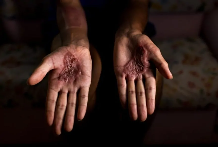 * Quando chegou à casa do pai, a jovem apresentava queimaduras de terceiro grau nas mãos e na língua, hematomas na cabeça e cabelo cortado à força.