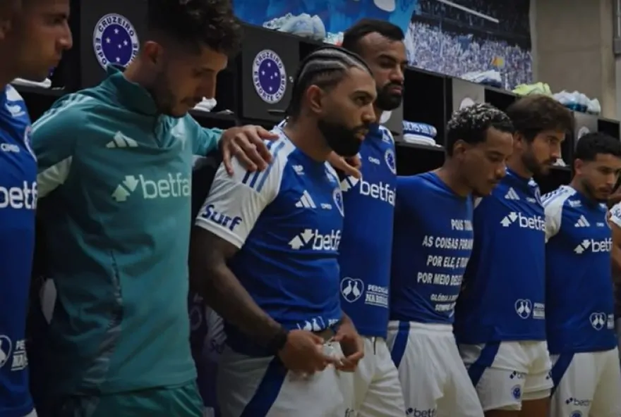 Gabigol, na divulgação do Cruzeiro [https://ge.globo.com/futebol/times/cruzeiro/], também falou no vestiário. Pediu energia positiva ao time.