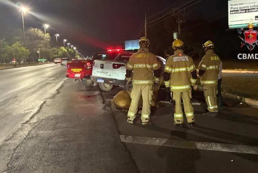 O atropelamento ocorreu por volta das 22h e os bombeiros enviaram duas viaturas para prestar assistência. Os socorristas fizeram os primeiros socorros e chamaram o órgão de proteção animal ligado à Secretaria de Agricultura do DF para intervir.