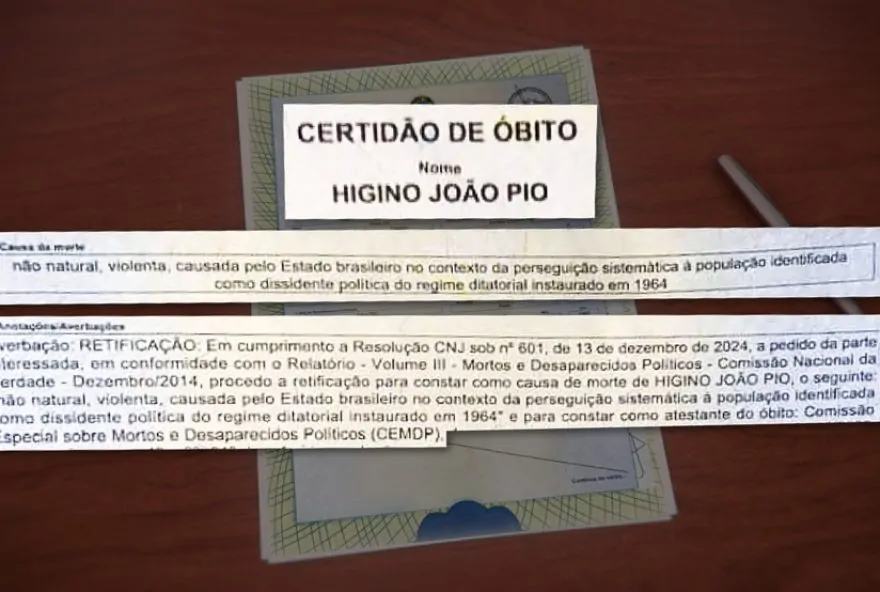 A alteração na certidão de óbito, com data de 14 de março de 2025, acontece por uma determinação do Conselho Nacional de Justiça (CNJ). Conforme o órgão, o documento informa agora que a morte do prefeito ocorreu de forma violenta, causada pelo Estado, no contexto da perseguição sistemática à população identificada como dissidente política, durante o regime ditatorial instaurado em 1964.