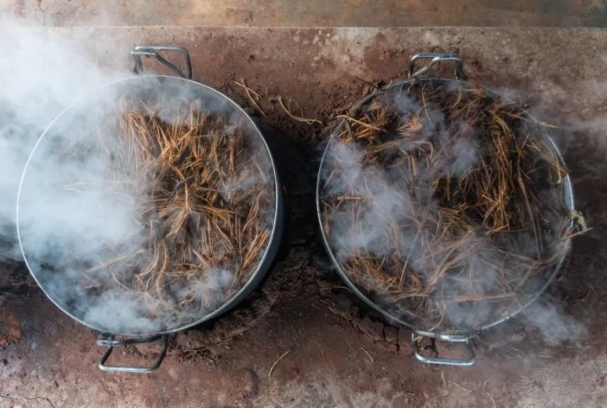 As duas plantas são maceradas e cozidas por um longo período. O resultado final é o chá, um composto de ervas distintas preparadas especificamente para a realização dos rituais.