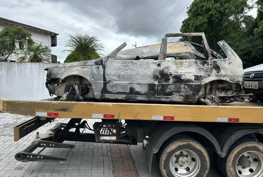 1 de 1 Carro onde os corpos foram carbonizados sendo levado até a delegacia em