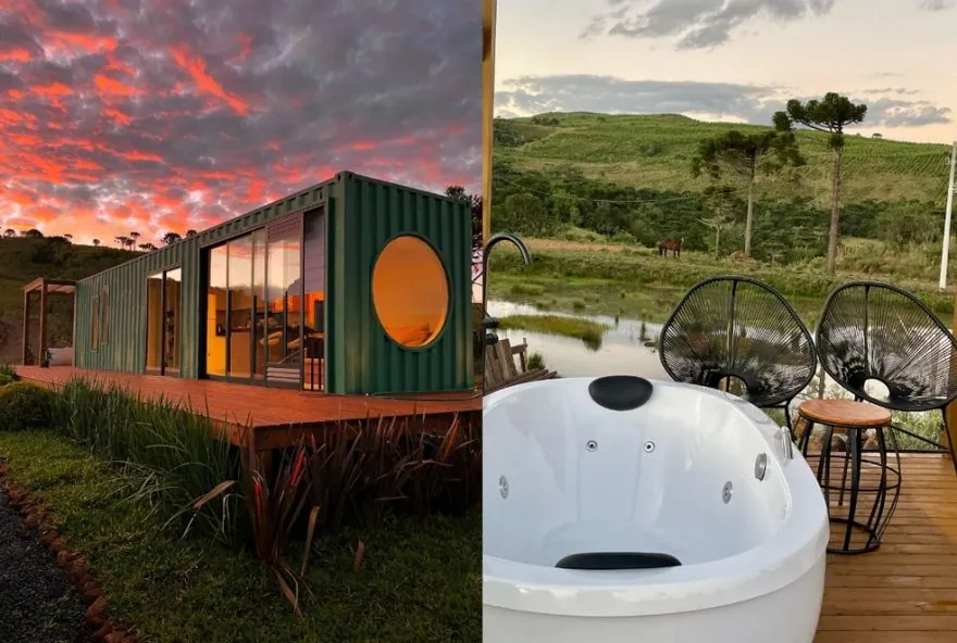 Contêiner que percorreu o mundo vira chalé com ofurô e isolamento térmico em SC