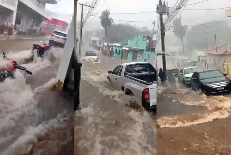 Água inundou ruas, invadiu casas e estabelecimentos comerciais em Carmo do Rio Claro; em Cássia, carros chegaram a ser arrastados.