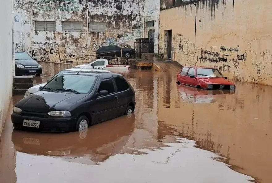 (3), na Rua Maranhão, Centro de Avaré, um carro foi arrastado pela correnteza