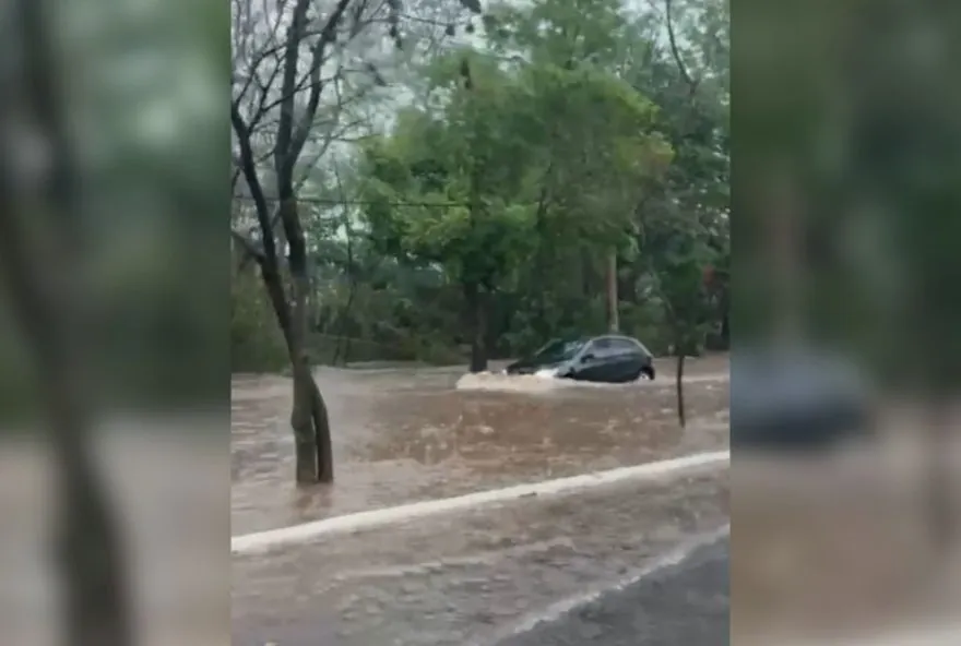 Em um ponto da avenida Waldir Felizola de Moraes, houve registro de alagamento. Veículos se arriscaram em meio à água acumulada na via.
