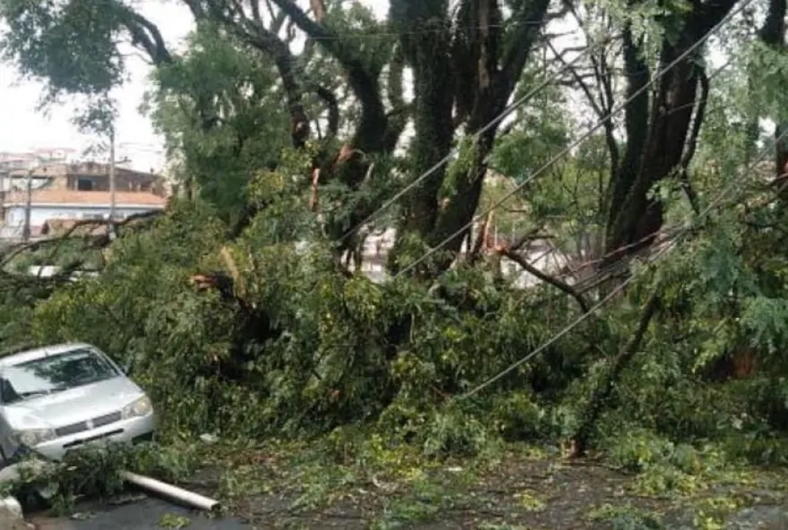 A Praça Ema Northmann, por exemplo, registrou a queda de pelo menos seis árvores, segundo a Prefeitura de São Paulo, e de cinco postes, segundo a concessionária Enel. Internautas registraram os estragos nas redes sociais (veja abaixo).