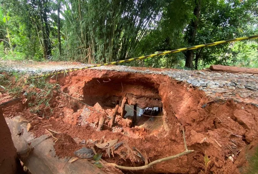 Por volta das 10h, a Defesa Civil iniciou a reconstrução de uma das pontes e a