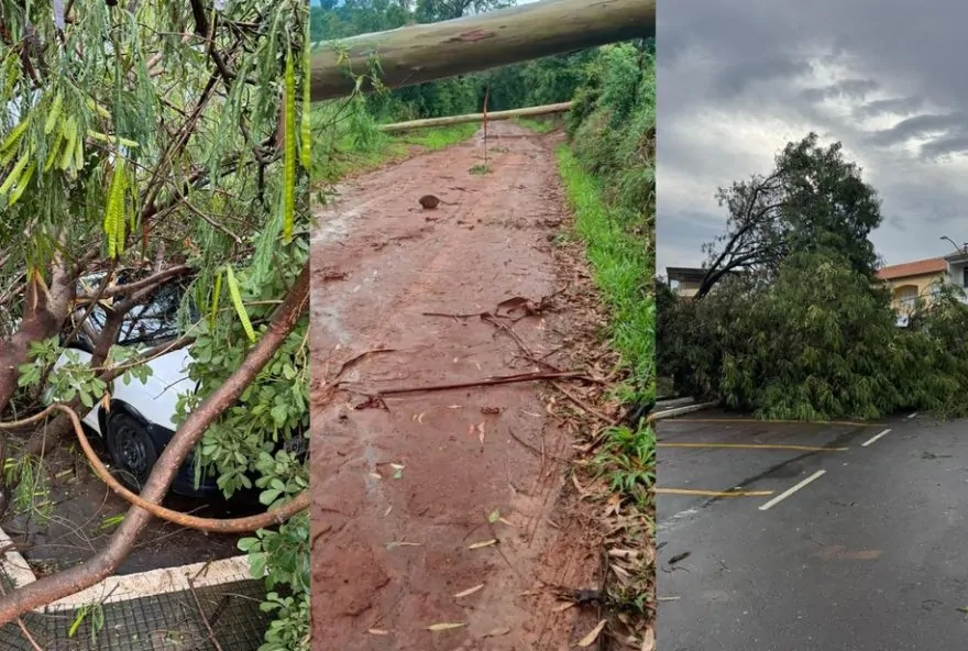 Chuva derruba árvores e causa estragos em Paraguaçu, MG